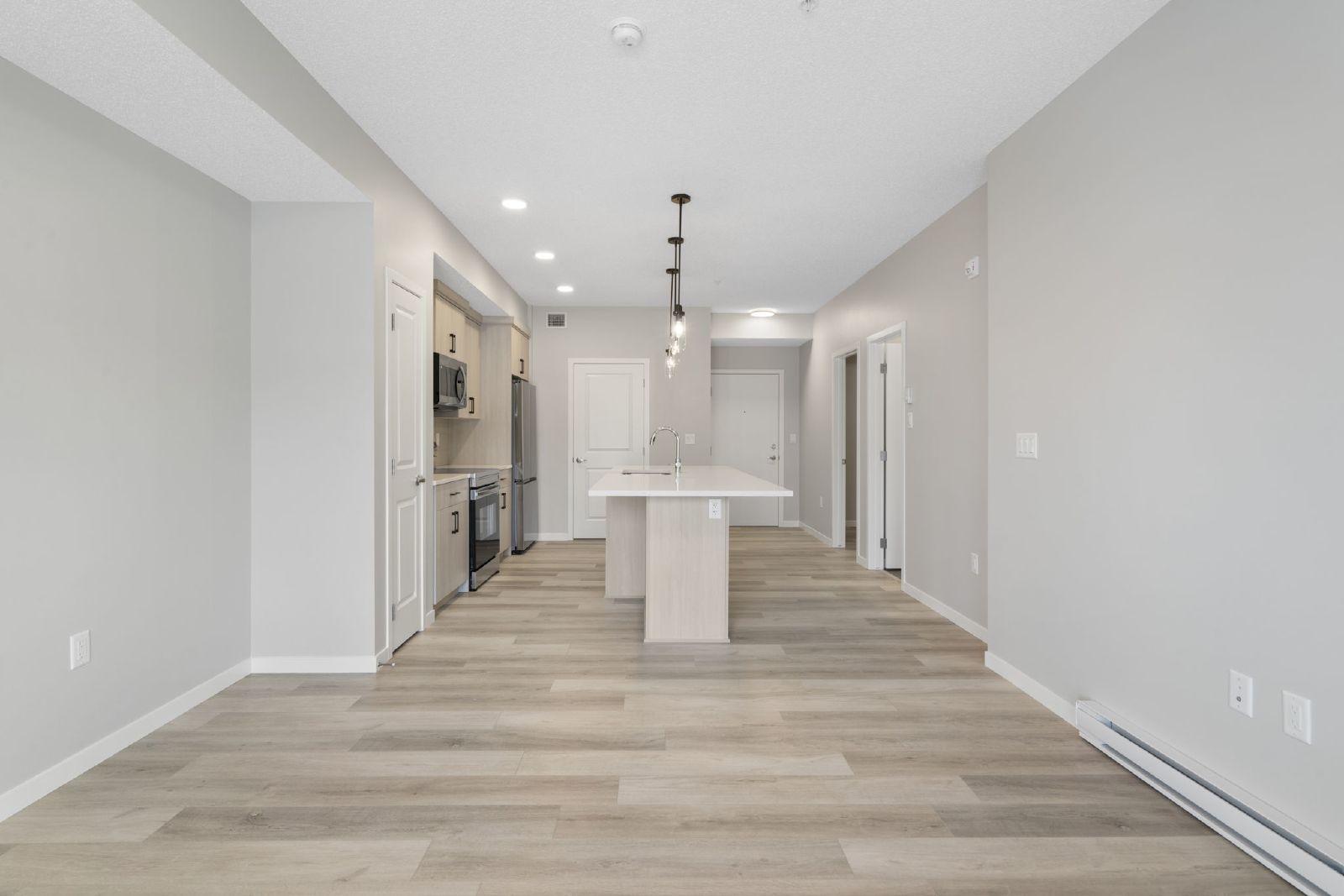 The open-concept living and dining area offers an inviting space for both relaxing and entertaining. The modern kitchen features abundant cabinetry and a highly functional layout designed for everyday living.