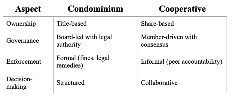 One of the most critical distinctions between these property types lies in how they are governed.